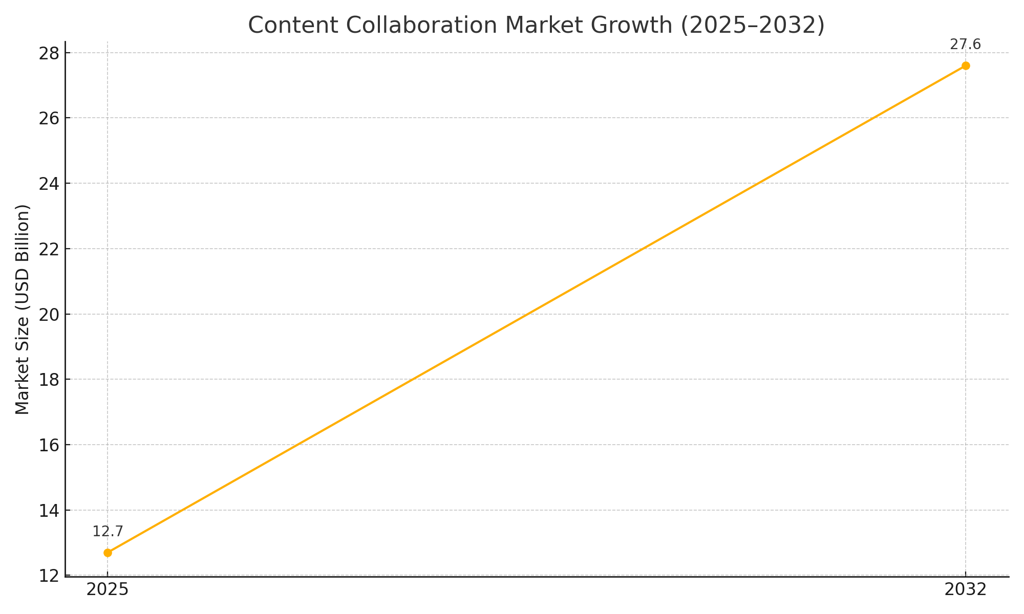 Content collaboration is experiencing sustained global momentum. Based on forecasts, the market is expected to nearly double from US$12.7 billion in 2025 to US$27.6 billion by 2032, reflecting strong adoption across creator communities, enterprises, media sectors, and emerging digital ecosystems.